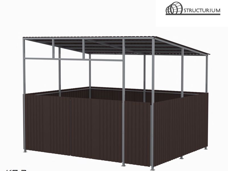 При производстве Контейнерной площадки используется профильная труба 60*60*3мм, 60*30*3мм, 40*20*2мм и 30*30*2мм. Покрытие крыши и обшивка по периметру – профлист. Покраска полимерная порошковая с предварительным нанесением цинкосодержащего грунта, цвет серый.
