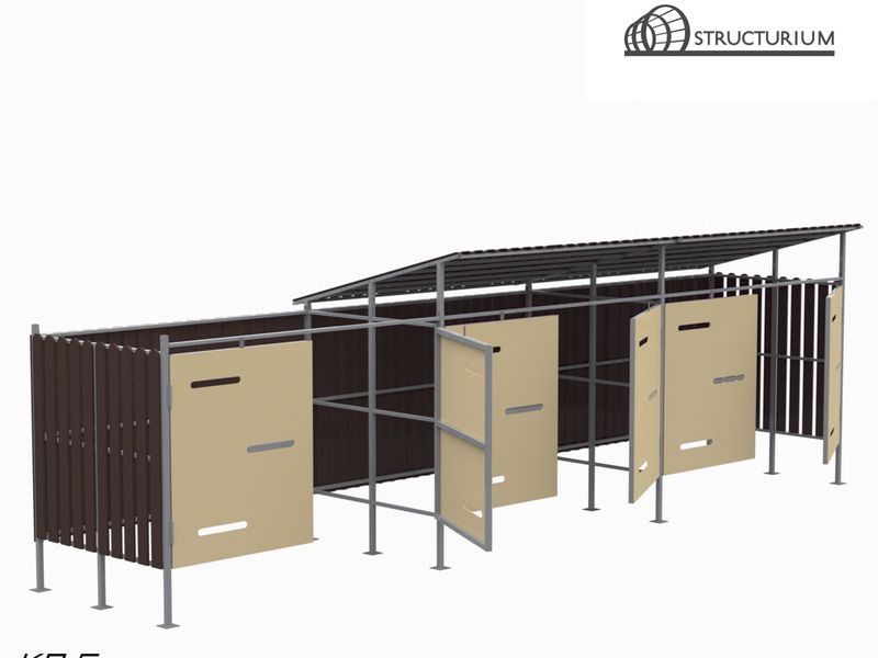 При производстве Контейнерной площадки используется профильная труба 40*40*2мм, 40*25*2мм и 25*25*2мм. Покрытие крыши и задней стенки – профлист. Обшивка дверей – алюминиевые композитные панели. Обшивка боковых стенок – термопластичные панели. Покраска полимерная порошковая с предварительным нанесением цинкосодержащего грунта, цвет серый.